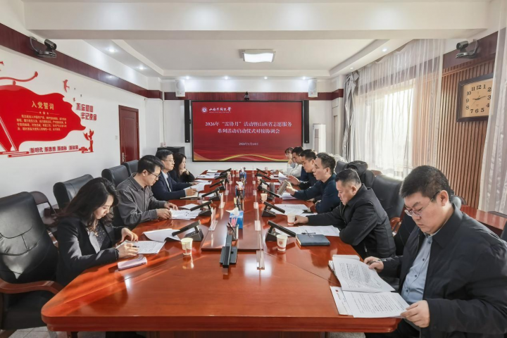 1月14日,2026 年“雷锋月”活动暨山西省志愿服务系列活动启动仪式前期对接协调会在我校召开。会议旨在确保启动仪式各项工作高效推进、无缝衔接,全面提升会议组织筹备的规范化与精细化水平。山西省委社会工作部五处副处长陈涛、山西省青少年事业发展中心副主任李宏伟、大同市委社会工作部副部长高波、山西财经大学团委副书记牛晓未、校党委副书记张卫国出席。大同市委社会工作部、大同市急救中心、校团委相关人员参加会议。会议由高波主持。