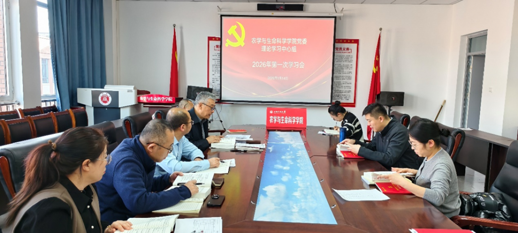 1月14日,农学与生命科学学院党委在北区教学楼D716会议室开展理论学习中心组2026年第一次(扩大)学习会,学院党政班子成员、学院科级干部、各党支部书记、辅导员参加学习,院党委书记富中华主持会议。