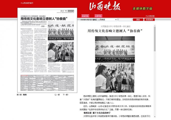 近日,山西晚报·山河+记者走访大同市多所大中小学,实地探访各学段思政课教师如何围绕“弘扬中华优秀传统文化”主题,开展一体化教学实践。