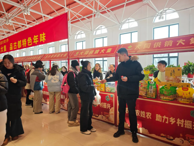 临近腊月,年味渐浓。1月16日,山西大同大学学苑餐厅人头攒动、笑语盈盈,由大同市供销社组织的供销年货大集校园专场在此举办。