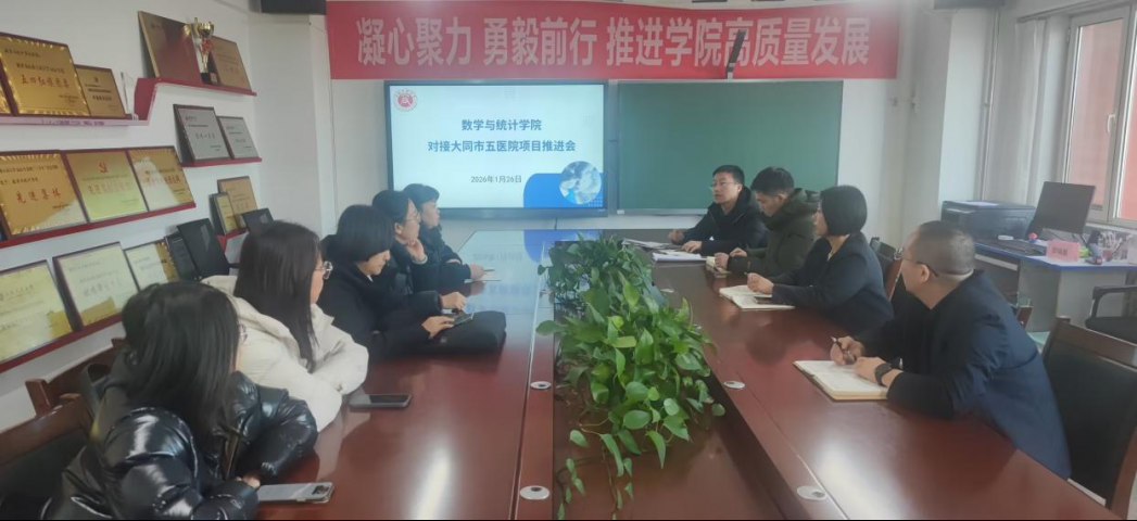 1月26日上午,数学与统计学院围绕与大同市第五人民医院的合作项目,组织召开内部专题研讨会。学院党政领导及项目团队全体成员参加会议,就合作推进工作进行深入研讨与部署。