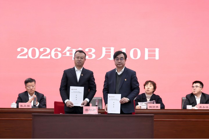 赵水民与学院党委、部门负责人代表签订《2026年度全面从严治党、党风廉政建设责任书》。