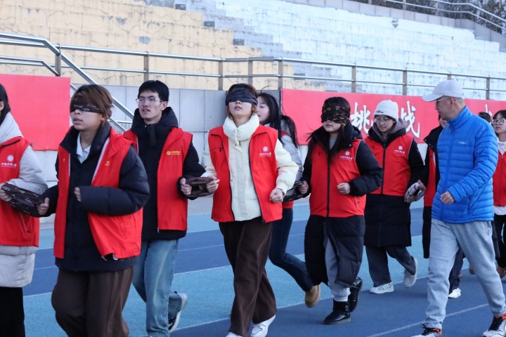 自2025年11月起,学校高标准启动助盲跑志愿服务专项建设,特邀“一束光助盲跑”培训中心创始人、“2025北京榜样”十月人物宋海峰担任导师。宋海峰深耕助盲跑领域十余年,累计带领2300余名志愿者陪伴600多位视障跑者完成训练与比赛,探索形成科学系统的助盲跑方法与理念,足迹遍布11个省份,是国内助盲跑推广的核心引领者。在他的专业领航下,学校构建“理论筑基+实操赋能”的双轨培训体系,系统性培育专业化志愿队伍。室内教学阶段,宋海峰围绕引导技巧、心理关怀、应急规范等核心模块精准施教,厘清服务边界,夯实思想根基;室外实训环节,志愿者通过沉浸式模拟体验,在实践中磨合力、练技能,深刻体悟视障群体的出行困境。伴随着培训结束,山西大同大学“平城微光”助盲跑志愿服务队正式成立。