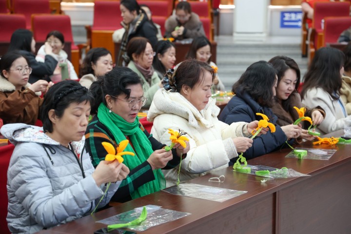 3月13日,校工会联合校妇女联合会在慎思楼报告厅举行“跟党奋进新征程 巾帼建功‘十五五’”女教职工指尖文化暨“忘忧母亲”黄花非遗制作传承活动。