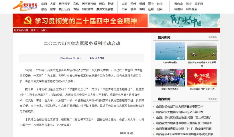 3月5日,2026年山西省志愿服务系列活动启动仪式在山西大同大学举行。活动以“学雷锋 做志愿 共同奋进‘十五五’”为主题,共吸引全省40所省管高校志愿服务工作负责人、优秀志愿服务项目代表、山西大同大学师生志愿者等约400人参加。