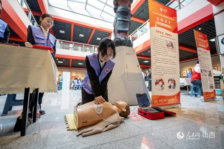 大同大学学生应急救护技能展示。人民网 马梦迪摄