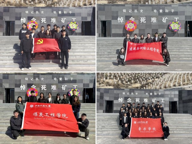 音乐学院、煤炭工程学院、机电工程学院、建筑与测绘工程学院分别组织青马工程学员、团学干部代表赴大同煤矿万人坑遗址纪念馆开展实践研学暨清明祭扫活动。师生们怀着崇敬之心瞻仰遗址、敬献白花,在历史现场感悟革命先辈的不屈意志与家国担当,深刻领会“不忘历史、珍爱和平”的时代内涵,让红色足迹成为青年成长路上最生动的思政课堂。