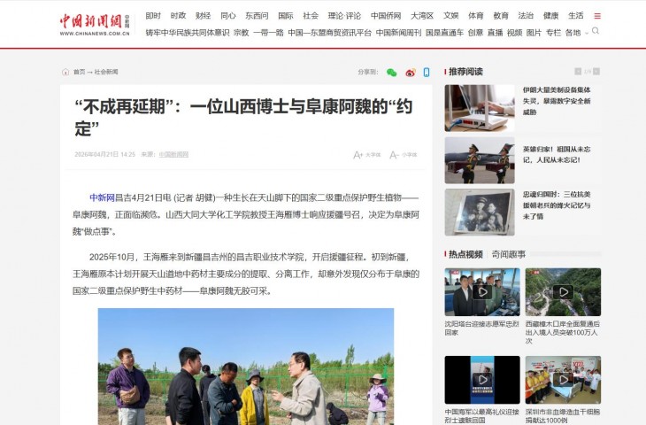 2025年10月,王海雁来到新疆昌吉州的昌吉职业技术学院,开启援疆征程。初到新疆,王海雁原本计划开展天山道地中药材主要成分的提取、分离工作,却意外发现仅分布于阜康的国家二级重点保护野生中药材——阜康阿魏无胶可采。