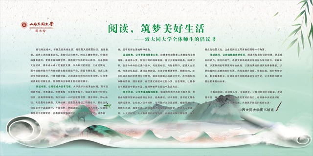 图书馆向全校师生发出阅读倡议,以书为友、以读为伴,培养终身阅读习惯、提升核心阅读能力,在阅读中厚植家国情怀、汲取奋进力量、涵养生活诗意,让书香浸润校园、阅读赋能成长,共同点亮美好生活。(来源:图书馆 责编:赵鑫)