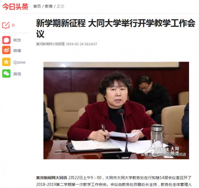 黄河新闻网大同讯 2月22日上午9:00,大同市大同大学教务处在行知楼14层会议室召开了2018-2019第二学期第一次教学工作例会。会议由教务处苏鹏处长主持,教务处全体管理人员、各学院院长和分管教学工作的副院长、教学评估与督导中心以及教学指导委员会全体委员参加。