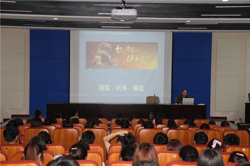 作为第九届校园文化节中重头戏之一的“中国近现代史系列讲座”于5月14日拉开帷幕,历史与旅游文化学院教授廉慧斌以“国耻抗争 崛起”为主题作首场报告 今年是世界反法西斯战争暨中国人民抗日战争胜利70周年。为缅怀历史,唤醒公众尤其是广大青年学生对历史的记忆,让客观史实昭示青年人的责任与担当,由我校历史与旅游文化学院资深教授、博士联合组成了宣讲团,于5月14日至6月上旬推出“中国近现代史系列讲座”。(张宁 王海明)