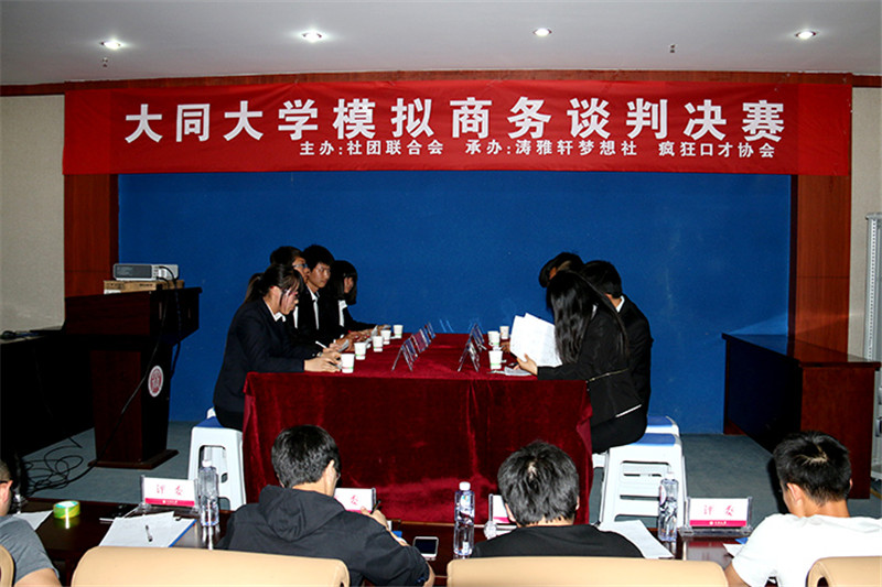 5月24日下午,由校社团联合会主办的模拟商务谈判大赛决赛在图书馆二层报告厅举行,本次大赛旨在运用虚拟的商务谈判来提升大学生的实践能力,培养大学生的职业素质,为以后职业生涯的成功做好铺垫。