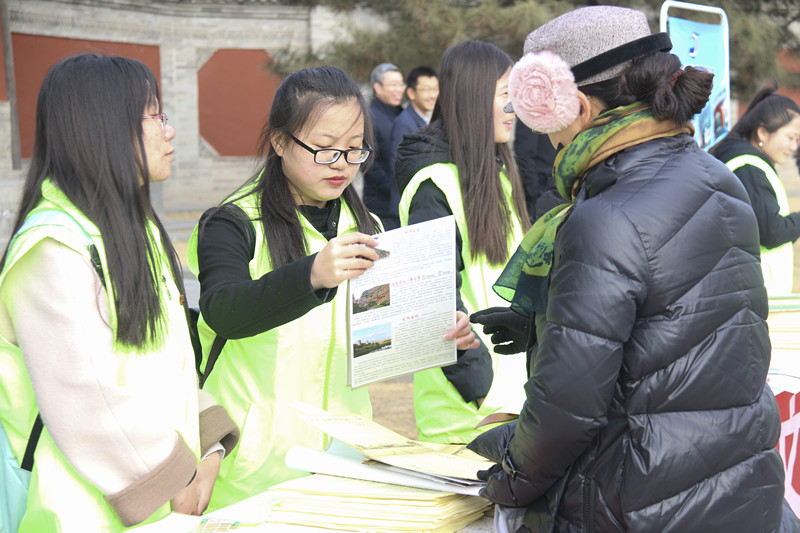 在宣传活动期间,志愿者们在景区门口向过往的市民及游客发放景区宣传册,随后在景区工作人员的安排下,志愿者们进入景区开展志愿服务工作。志愿者们对寺院内部分庭院进行了清扫,为景区游客进行义务引导。活动期间,我校志愿者的积极表现得到景区领导及工作人员的一致好评。