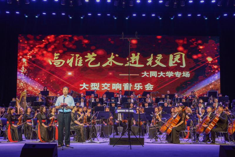 为响应教育部、文化部和财政部“高雅艺术进校园”的号召,由中共大同市委宣传部、大同市文化局主办,大同大学协办,天津歌舞剧院交响乐团和大同市歌舞剧院管弦乐团联袂演出的“高雅艺术进校园”——大同大学专场大型交响音乐会于6月22日晚在本真楼演播厅举行。