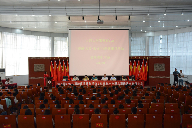 6月29日下午,由我校心理健康教育与咨询中心主办心理委员会协办的大同大学第五届“5·25” “理解·关爱·成长”心理健康月总结表彰暨心理委员换届大会在科技报告厅隆重举行。校党委书记常乃军、副校长翟大彤出席大会。大同市教育局副局长王希术、大同市心理咨询师协会会长时珺应邀出席。学校有关部门负责人、校心理健康教育与咨询中心专兼职心理咨询师、各学院负责学生工作的院领导、心理辅导员老师、各学院心理委员会主席和学生心理委员500余人参加大会。校心理健康教育与咨询中心主任肖海雁主持大会。