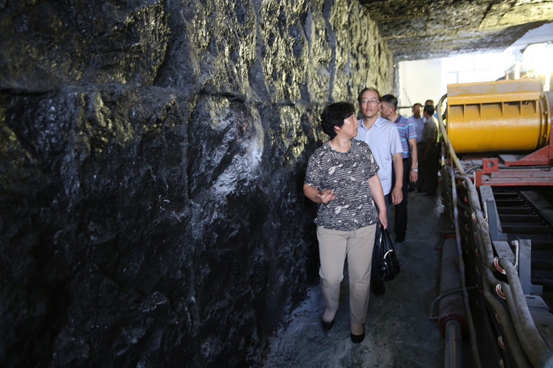 姚丽英在新平旺校区协调工作组组长武维承、校教学实验与实训中心主任张权恒、机电学院行政负责人武熙等陪同下,深入我校与同煤集团共建的“煤矿井下采掘实训基地”,实地调研基地建设情况。在基地现场,姚丽英听取了武维承、张权恒、武熙及基地负责人的情况介绍,并深入基地模拟炮掘工作面、模拟综采工作面实地考察工程建设进度。