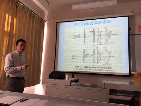 吴盛俊教授从光的波粒二象性谈起,系统地讲述了量子力学的起源与发展过程,对量子力学中的奇妙现象和应用做了简要介绍。讲座结束后,吴教授与在座师生进行了互动交流,与会师生对对量子力学有了进一步的认识,对量子力学的数学框架有了初步了解。