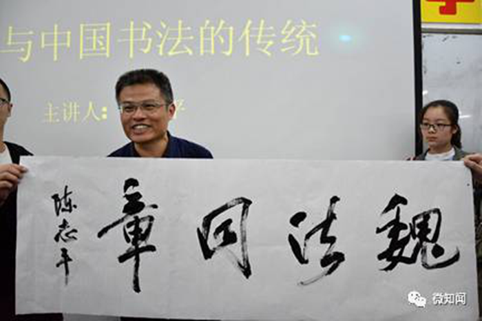 4月18日下午,暨南大学书法研究所博士陈志平教授主讲的“书法与中国传统哲学思想”主题讲座在文德楼113教室举办。此次讲座由大同大学科技处、文学院主办。