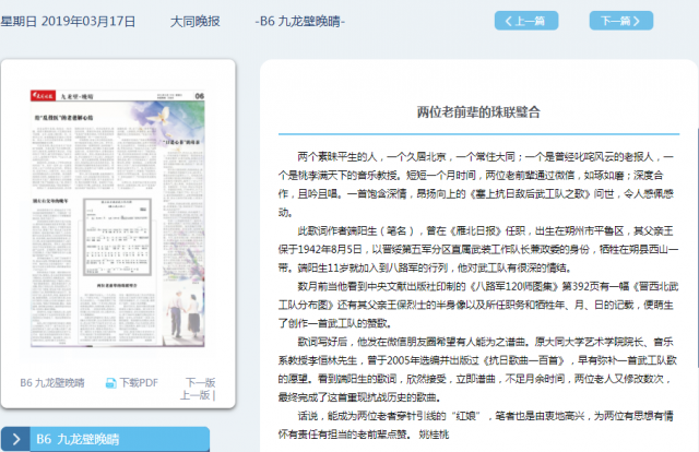 两个素昧平生的人,一个久居北京,一个常住大同;一个是曾经叱咤风云的老报人,一个是桃李满天下的音乐教授。短短一个月时间,两位老前辈通过微信,如琢如磨;深度合作,且吟且唱。一首饱含深情,昂扬向上的《塞上抗日敌后武工队之歌》问世,令人感佩感动。