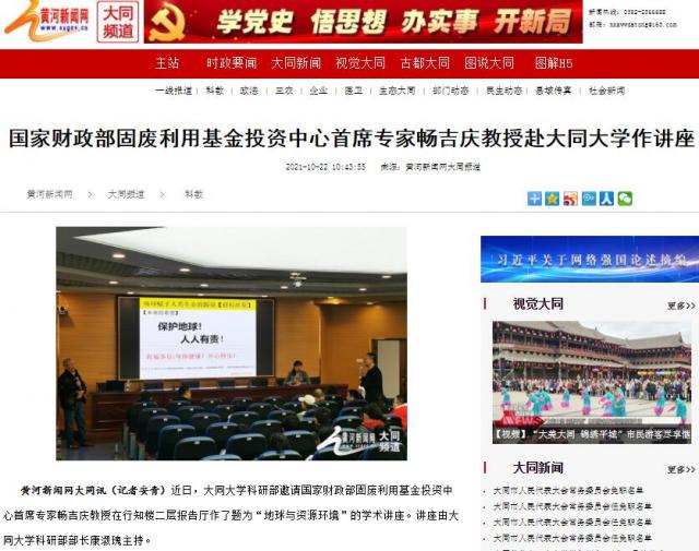 黄河新闻网大同讯(记者安青)近日,大同大学科研部邀请国家财政部固废利用基金投资中心首席专家畅吉庆教授在行知楼二层报告厅作了题为“地球与资源环境”的学术讲座。讲座由大同大学科研部部长康淑瑰主持。