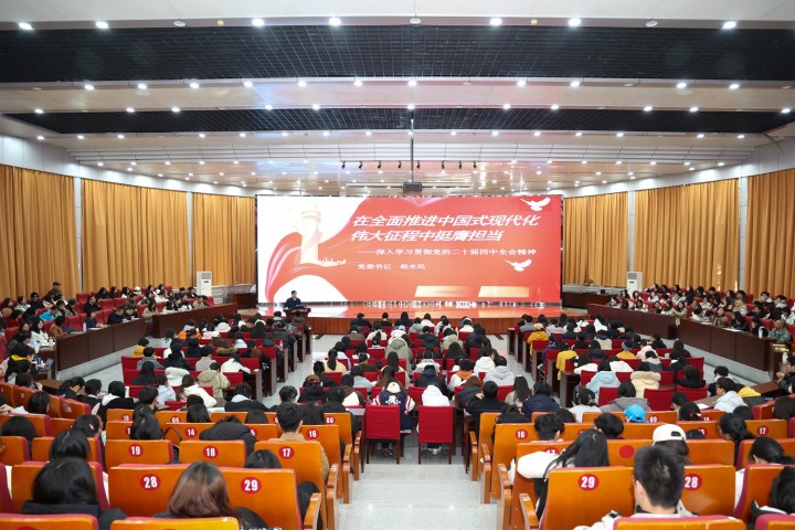 近日,校党委书记赵水民在慎思楼报告厅讲授专题思政课,以“在全面推进中国式现代化伟大征程中挺膺担当——深入学习贯彻党的二十届四中全会精神”为题,向师生宣讲党的二十届四中全会精神。马克思主义学院组织学校形势政策课教师现场观摩,并开展集体备课。